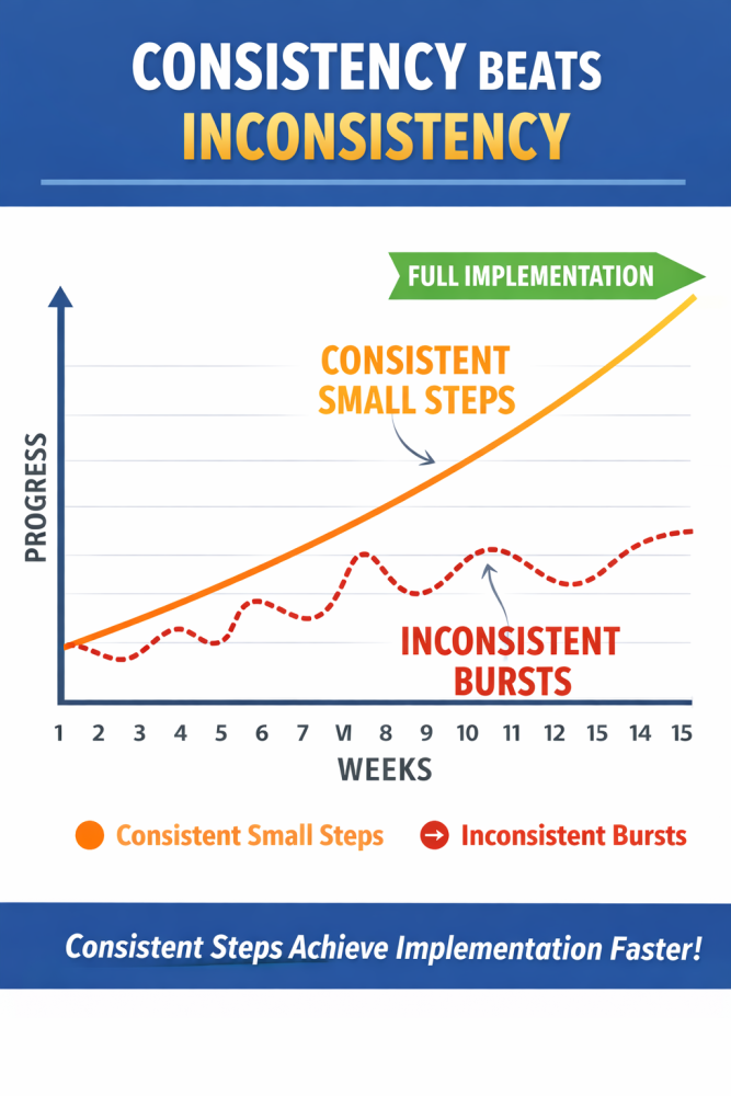 Consistency compounds over time, and eventually, your plans become fully implemented and sustainable.
